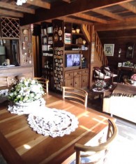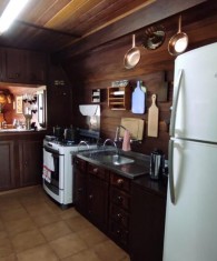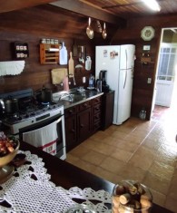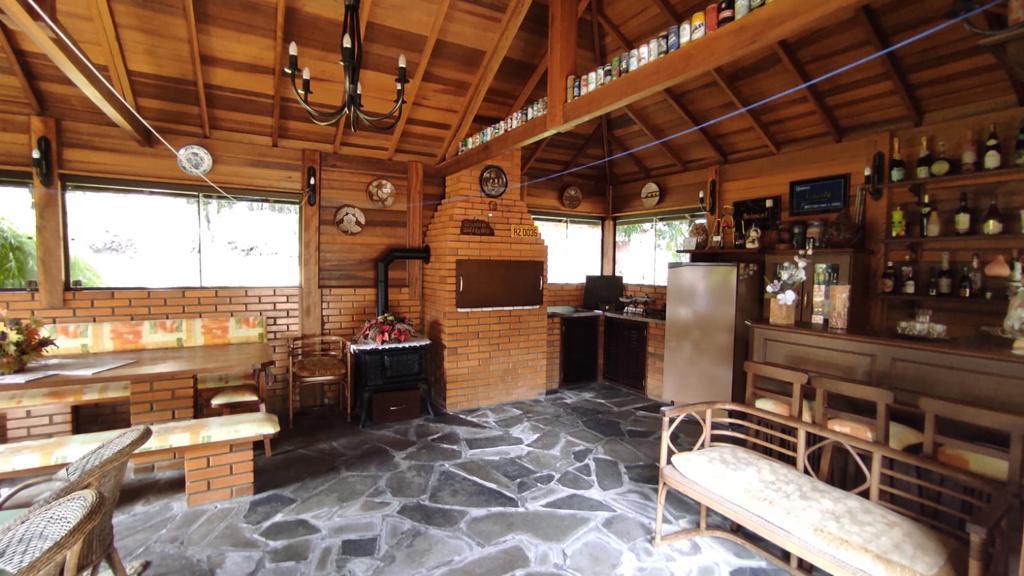 Cabana semi mobiliada com 3 dormitórios, 02 banheiros, sala de estar com lareira, sala de jantar, cozinha, área de serviço, espaço gourmet com churrasqueira, fogão a lenha, barzinho com banqueta.