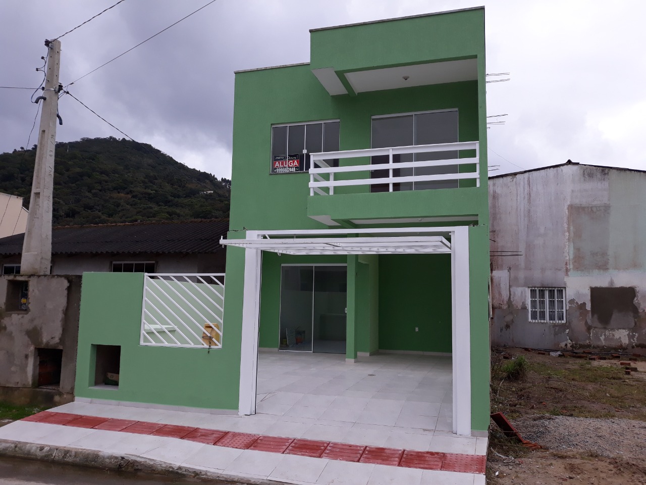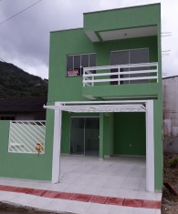 Sobrado com 02 suítes no andar superior, sacada na frente e atrás, lavabo, sala e cozinha integrados, área de serviço e garagem.