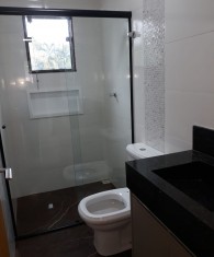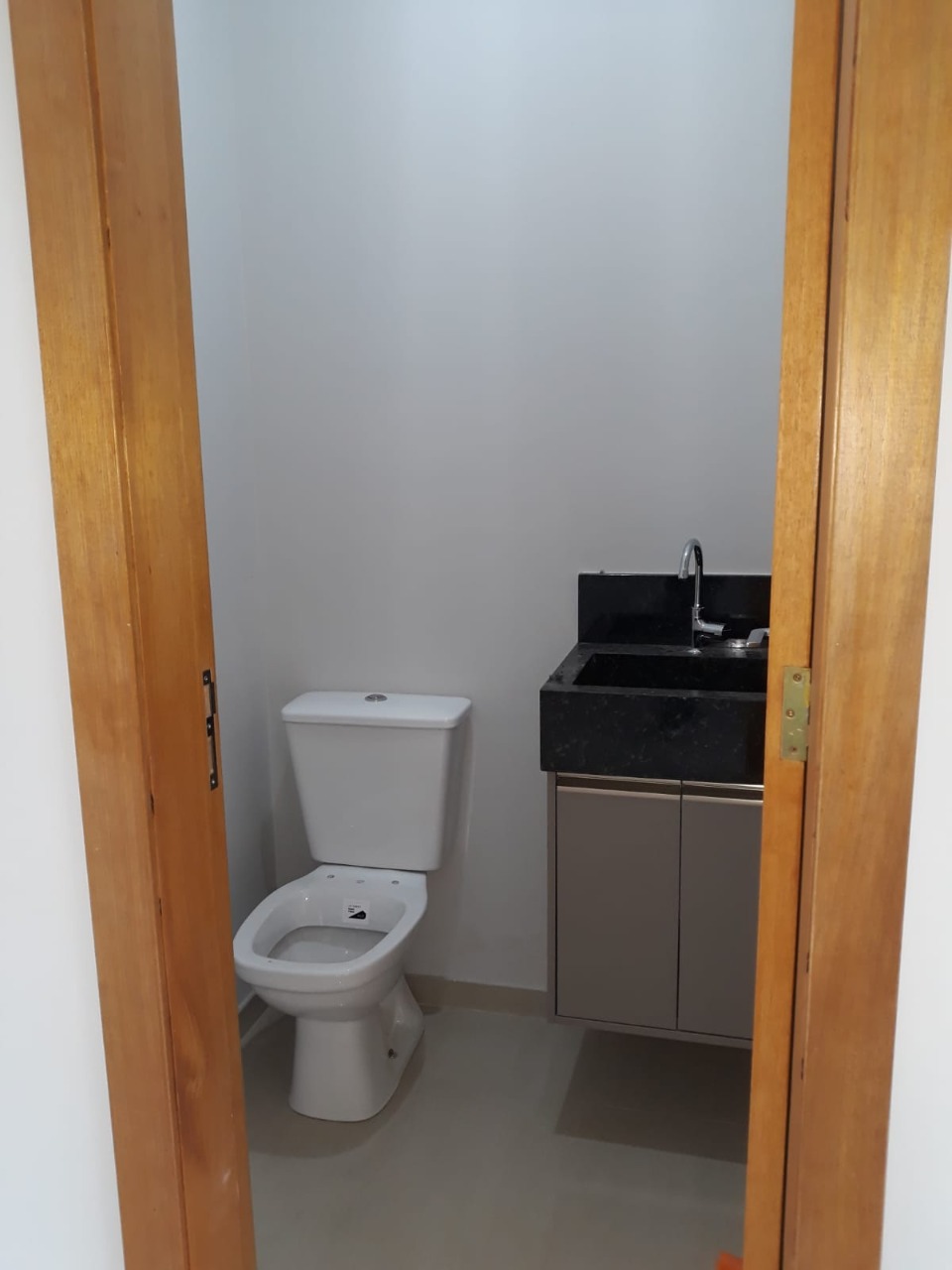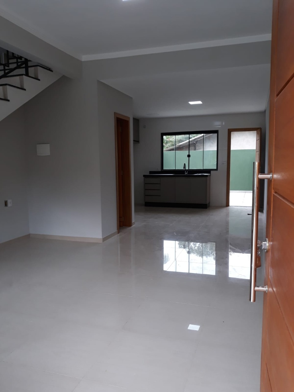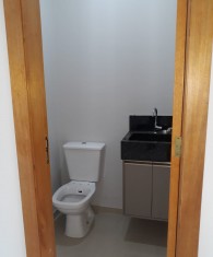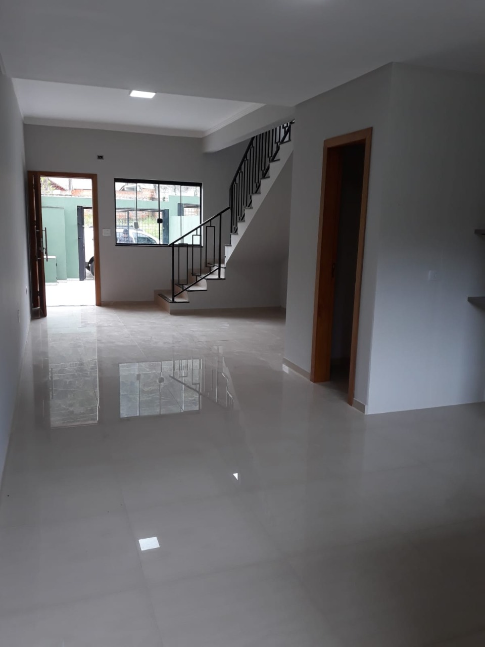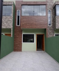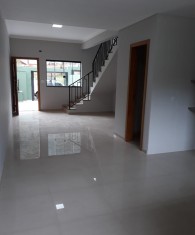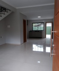 Geminado sem mobília com 2 quartos com sacada e 01 banheiro social na parte superior e no andar debaixo, sala e cozinha integradas, 01 lavabo e nos fundos uma pequena área externa. Garagem não coberta para 02 carros;