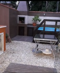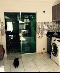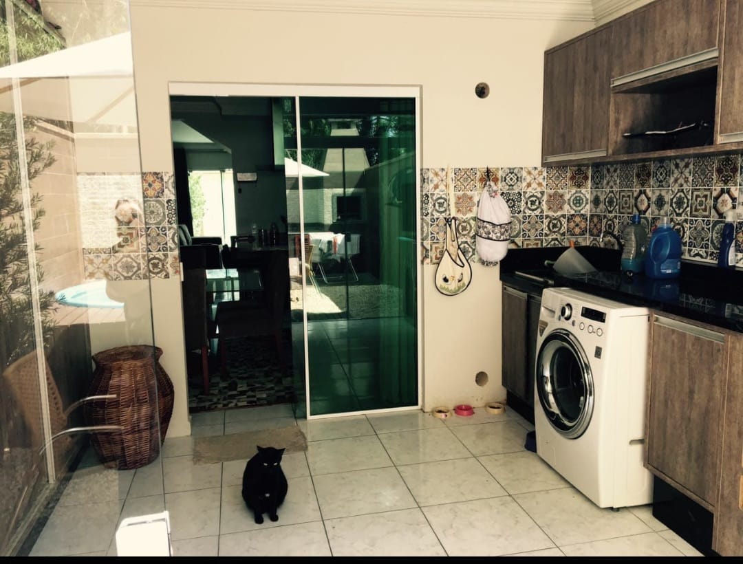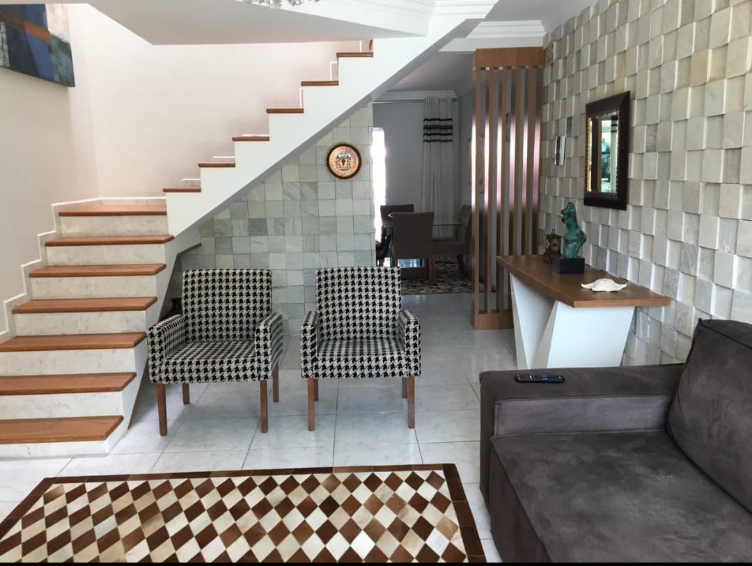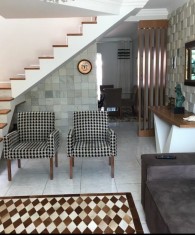 Vendo excelente geminado semi mobiliado com 02 quartos, sendo 01 suíte, closet e 01 banheiro na parte superior, sala, lavabo, cozinha finamente decorada, área de serviço e área de lazer com churrasqueira e piscina, todo murado. Vaga para 2 carros pequenos;