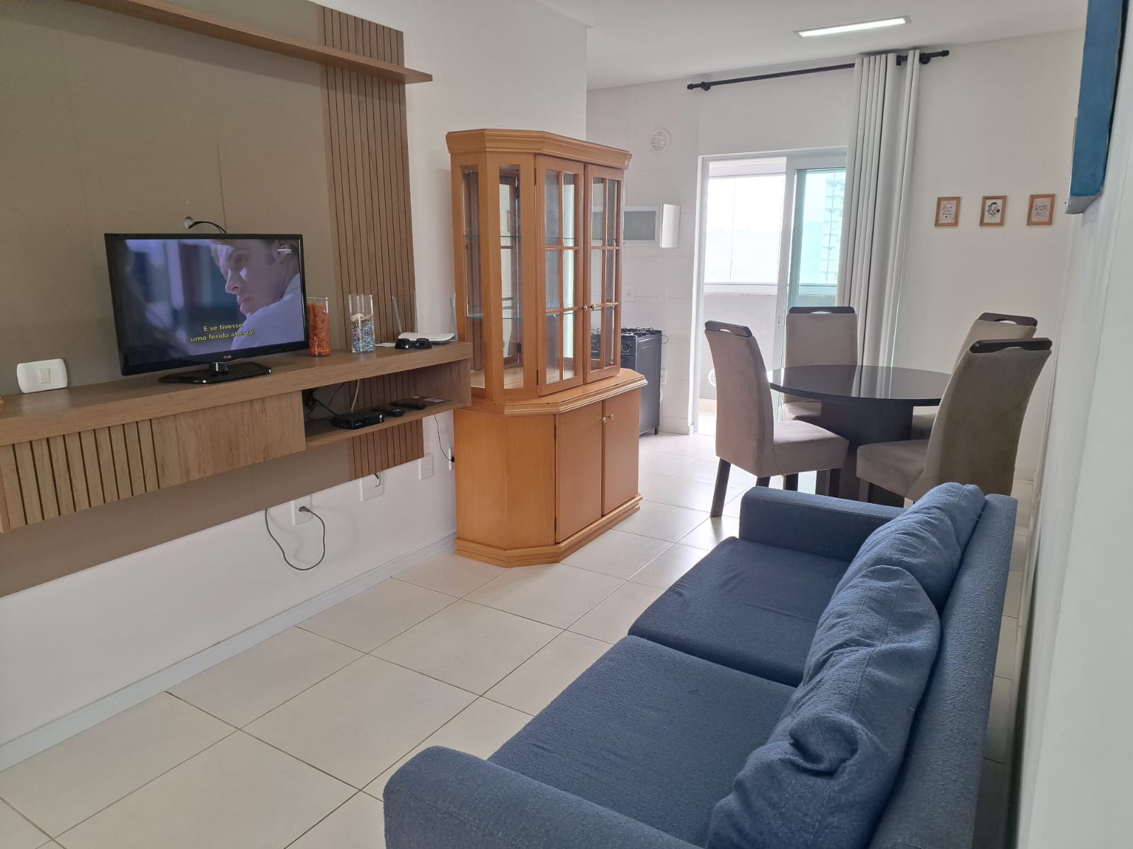 Apartamento mobiliado no "Residencial Casa Branca", no 8° andar (803), com vista para o mar com 2 quartos, sendo 1 suíte, sala, cozinha, área de serviço, 1 banheiro social, sacada com churrasqueira e 1 vaga de garagem privativa;
