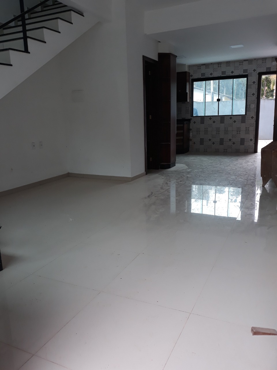 Geminado sem mobília com 2 quartos com sacada e 01 banheiro na parte superior e no andar debaixo, sala e cozinha integradas, 01 lavabo e nos fundos uma pequena área externa. Garagem não coberta para 02 carros;